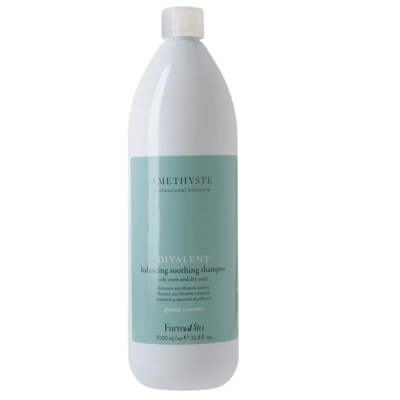 Balancing shampoo designed for hair with an oily scalp and dry ends. AMETHYSTE DIVALENT gently cleanses and soothes the scalp, regulates excess sebum production, and simultaneously hydrates the dry parts of the hair. Ideal for combination hair types – it provides freshness to the scalp and softness along the lengths. Suitable for frequent use and professional salon care.