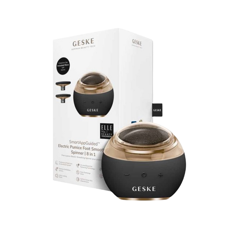 Enjoy professional pedicure care at home with the GESKE Electric Pumice Foot Smoothing Spinner 8-in-1 in elegant grey. This smart device combines eight functions for thorough, quick, and customizable foot care.