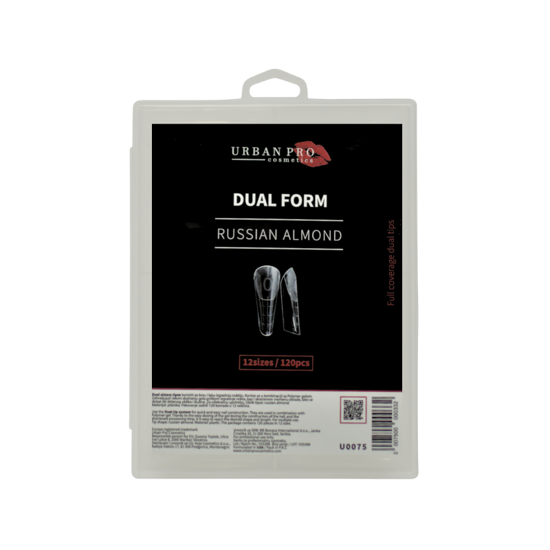 Dual Form Tips are designed for quick and easy nail building with minimal effort. They are used in combination with polymer gel, allowing simple material dosage and even distribution during shaping. Thanks to the reduced processing time, it's easy to achieve the desired shape and length without excessive filing and without complications.